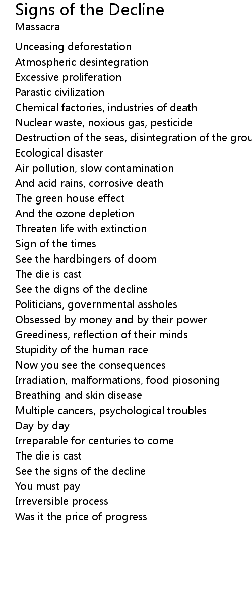 And acid rains, corrosive death |
