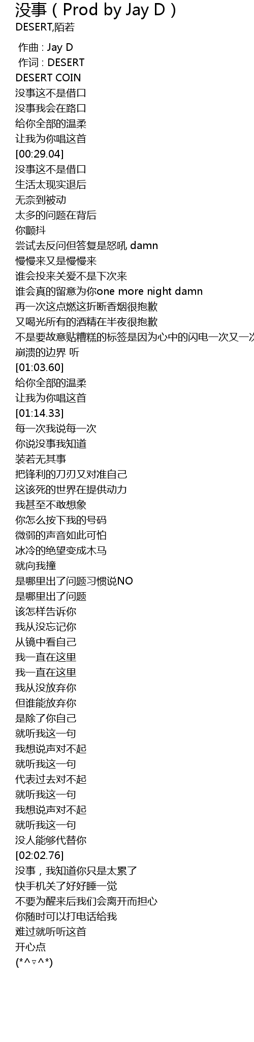 | [02:03.13] | 没事,我知道你只是太累了 |