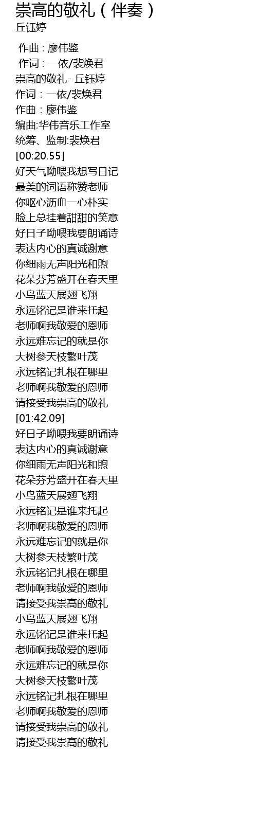 | [01:31.18] | 老师啊我敬爱的恩师 |