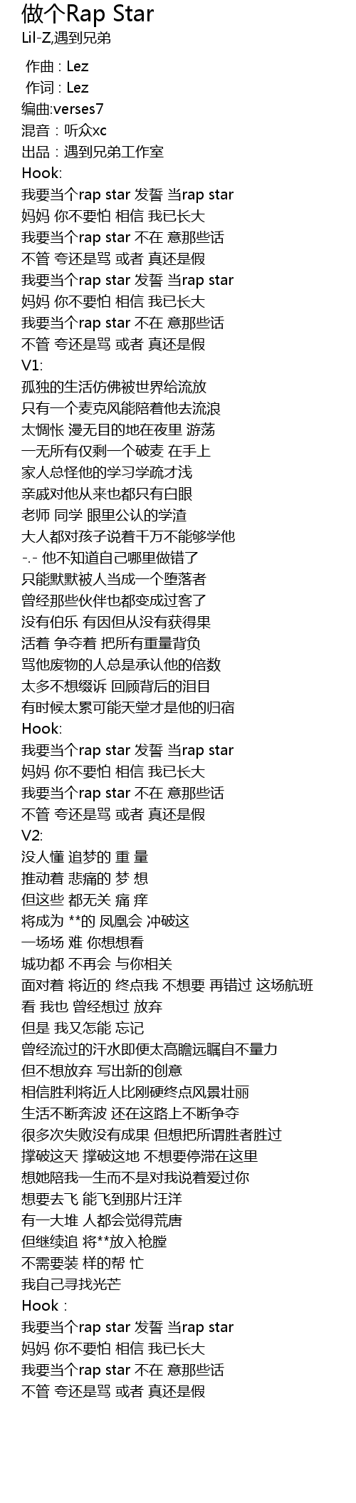 | [00:16.52] | 我要当个rap star 不在 意那些话 |