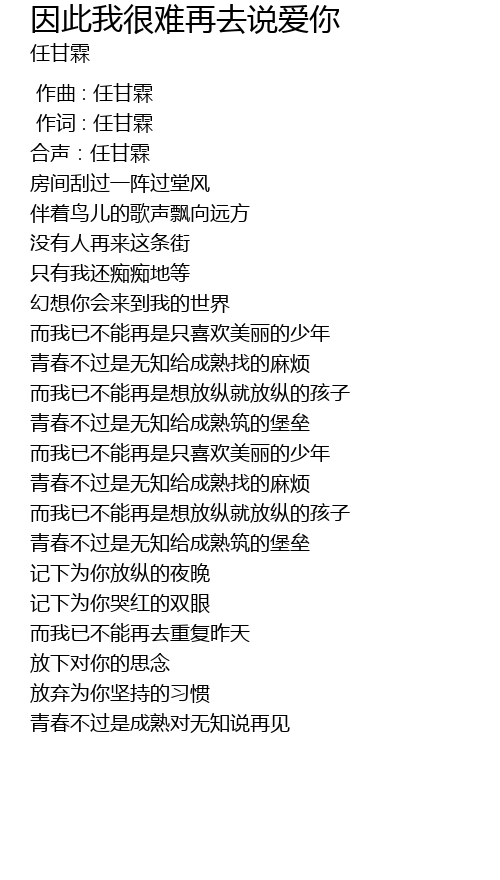 | [00:01.000] | 作词 : 任甘霖 |
