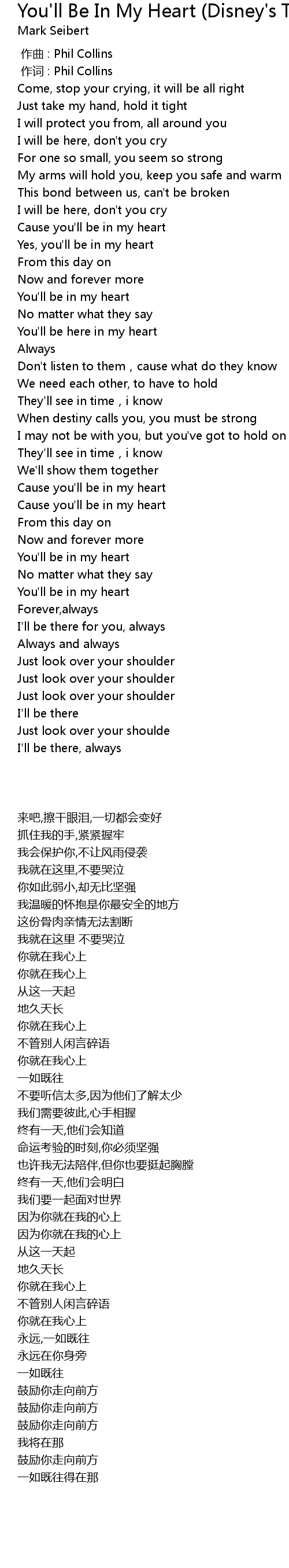 | Song | You'll Be In My Heart (Disney's Tarzan) |