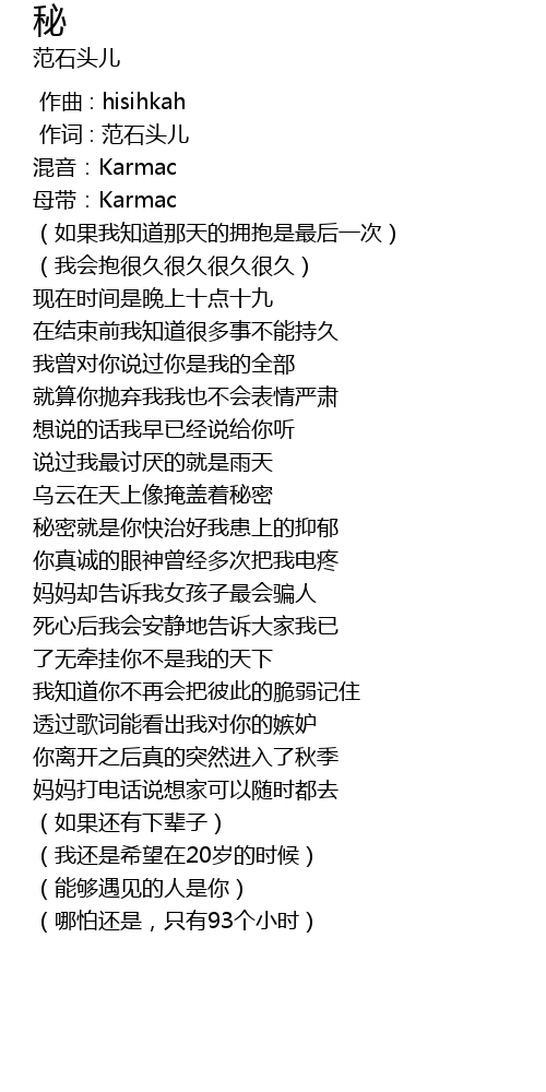 | [00:00.00] | 混音:Karmac |