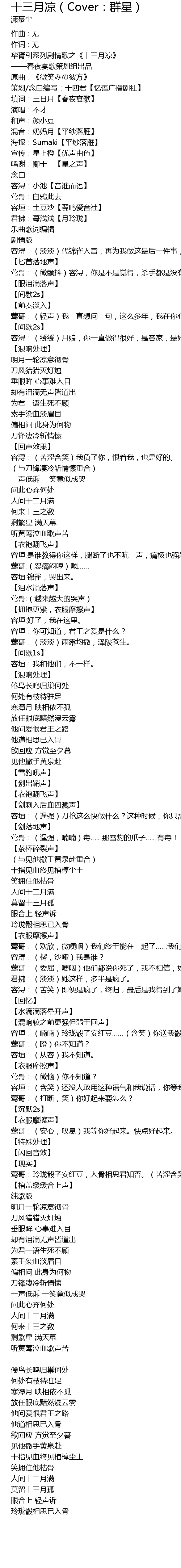 | 华胥引系列剧情歌之《十三月凉》 | |