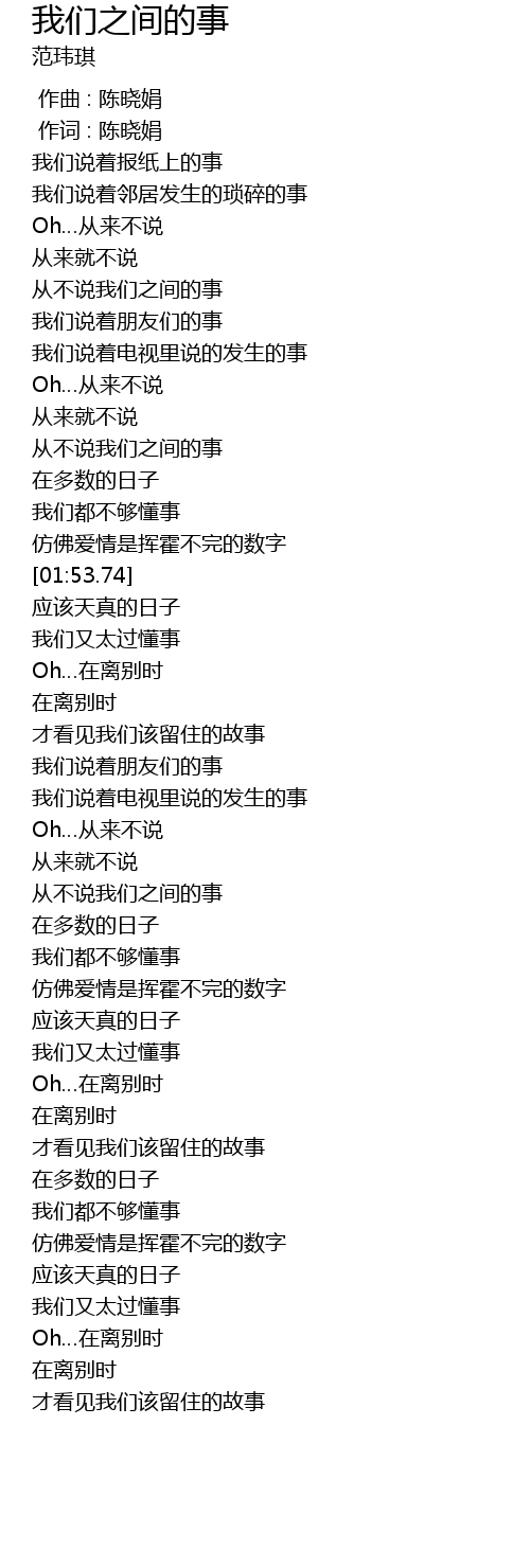 | [00:59.99] | 从不说我们之间的事 |