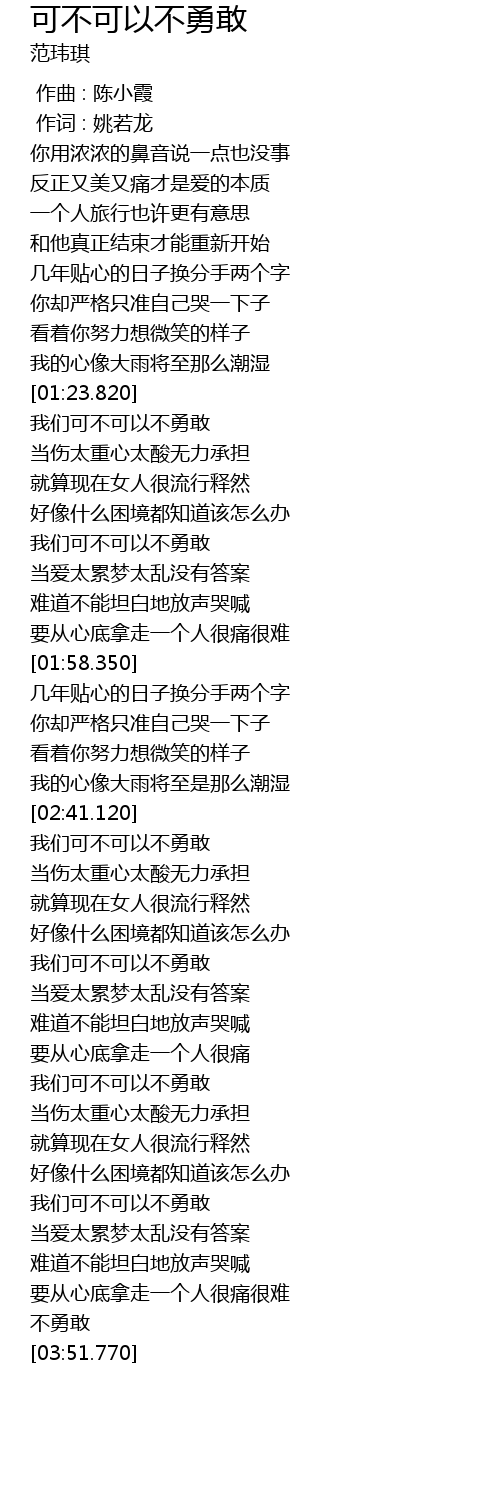 | [03:28.860] | wǒ men kě bù kě yǐ bù yǒng gǎn |
