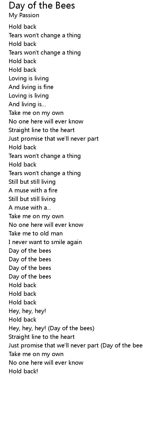 Just promise that we'll never part (Day of the bees) |