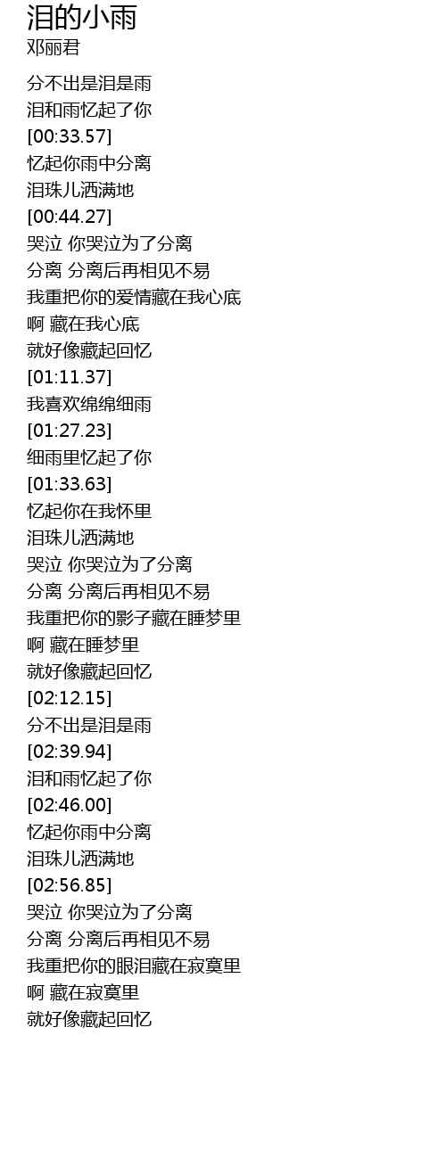 | [02:41.39] | 泪和雨忆起了你 |