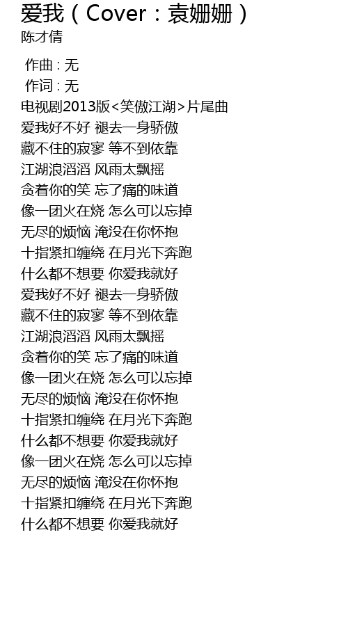 | [00:08.460] | 电视剧2013版<笑傲江湖>片尾曲 |