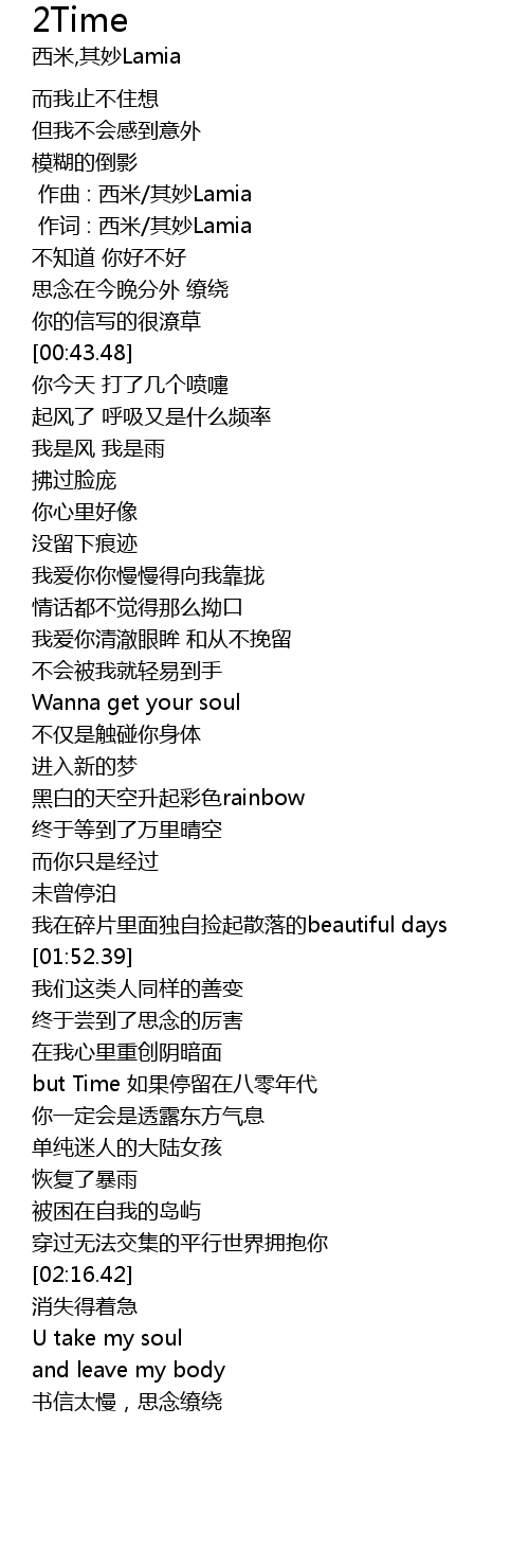 | [02:20.27] | U take my soul |