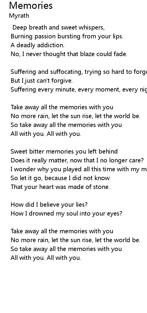 So take away all the memories with you |