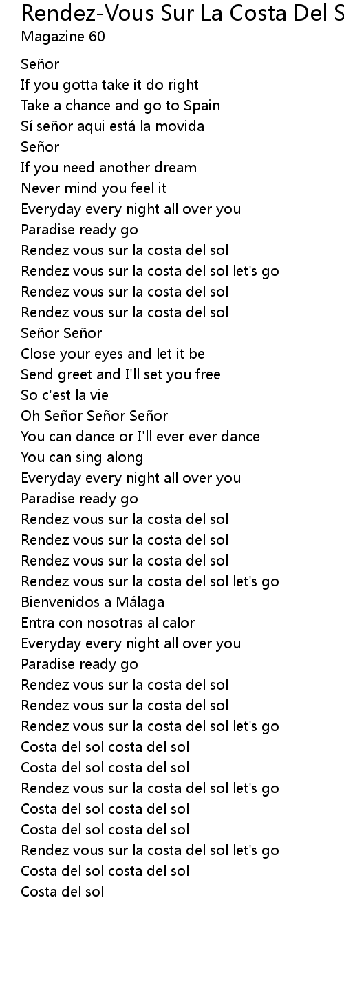 | [01:42.77] | Rendez vous sur la costa del sol |