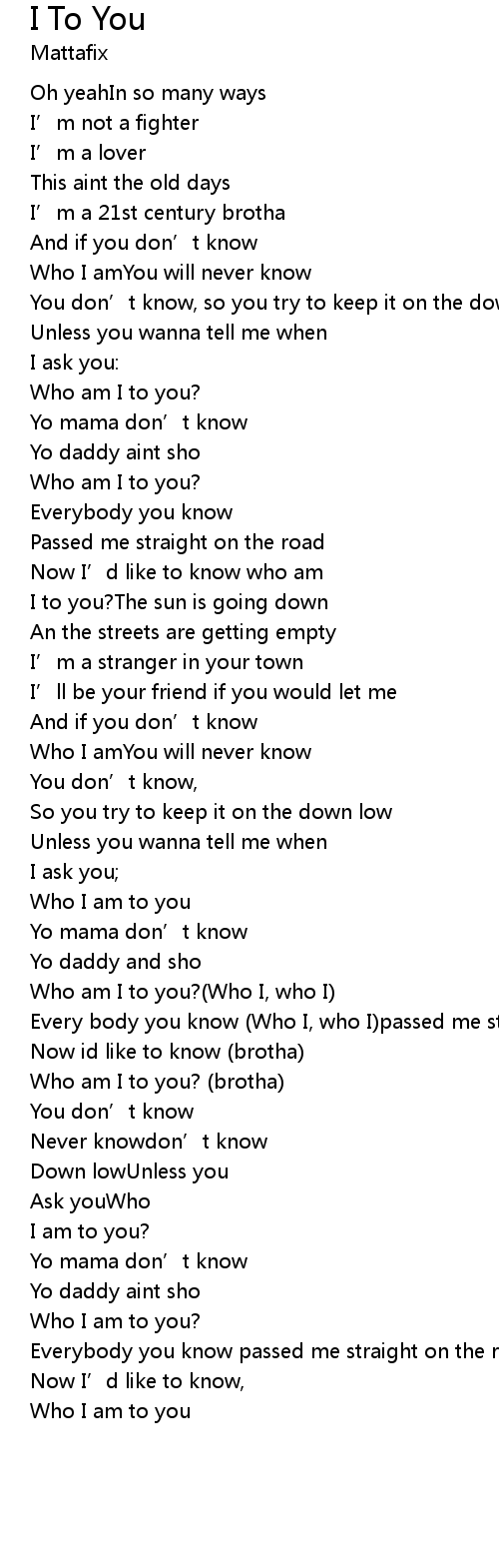 | Who am I to you?(Who I, who I) | |