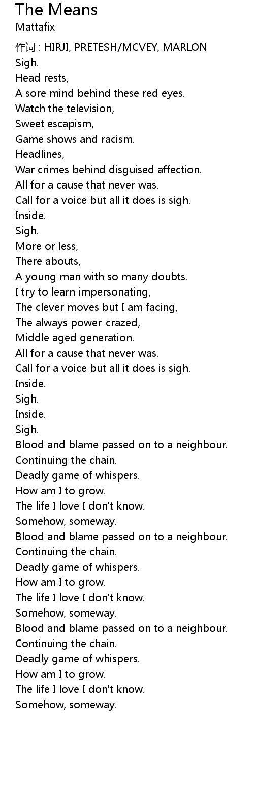 | 作词 : HIRJI, PRETESH/MCVEY, MARLON | |