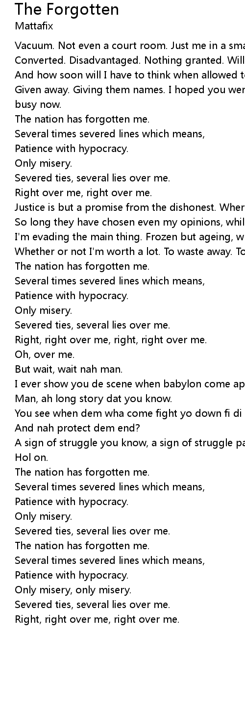 The nation has forgotten me. |