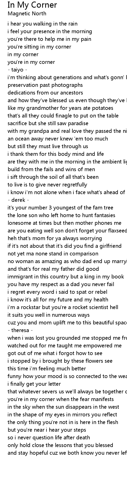 in my corner