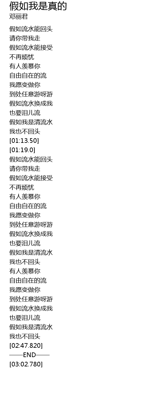 | [01:20.800] | jiǎ rú liú shuǐ néng huí tóu |