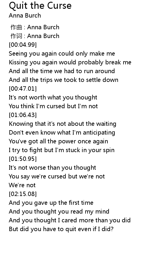 | [00:00.000] | zuò qǔ : Anna Burch |