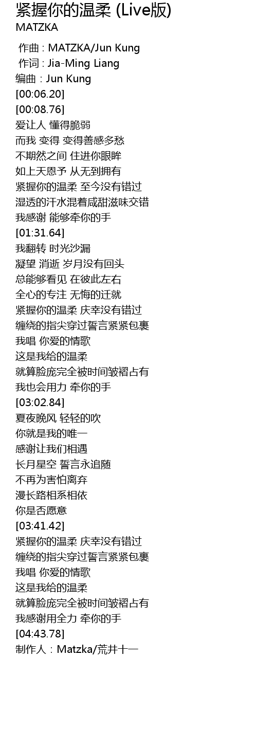 | [00:01.000] | 作词 : Jia-Ming Liang |