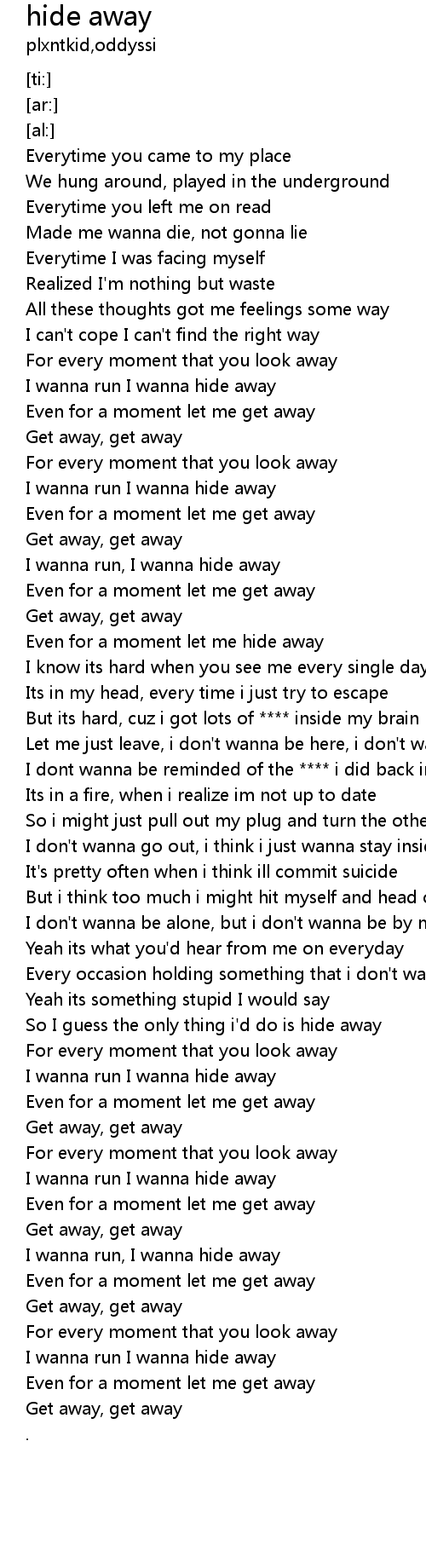 | [02:00.298] | So I guess the only thing i'd do is hide away |