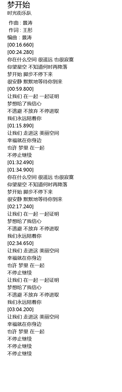 | [00:45.300] | 梦开始 脚步不停下来 |