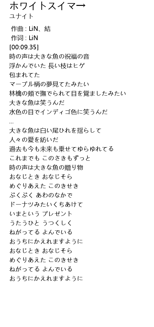 | [02:25.96] | 大きな魚は白い尾ひれを揺らして |