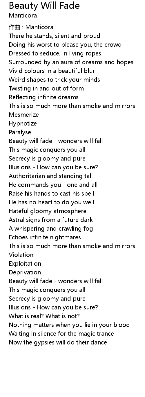 | Beauty will fade wonders will fall | |