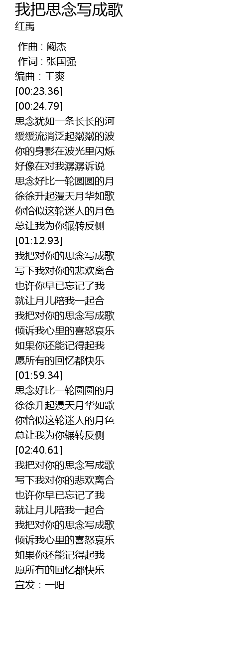 我把思念写成歌 wo ba si nian xie cheng ge Lyrics