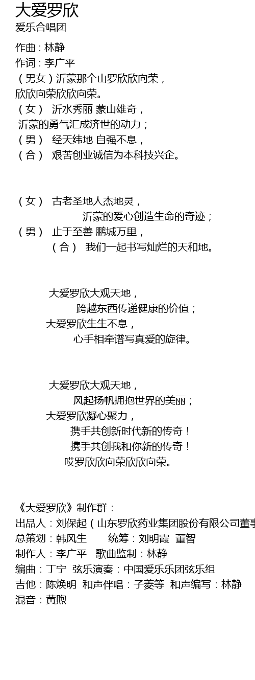 | Album | 大爱罗欣 (合唱版) |