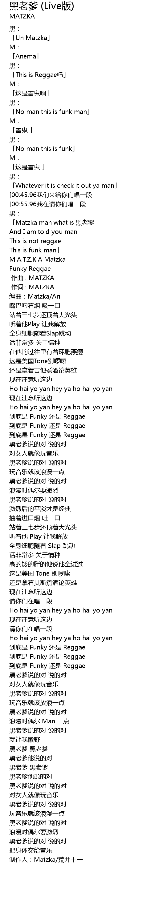 | [01:03.14] | 到底是 Funky 还是 Reggae |