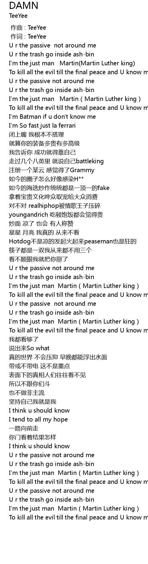 | [01:40.00] | I'm the just man Martin(Martin Luther king) |