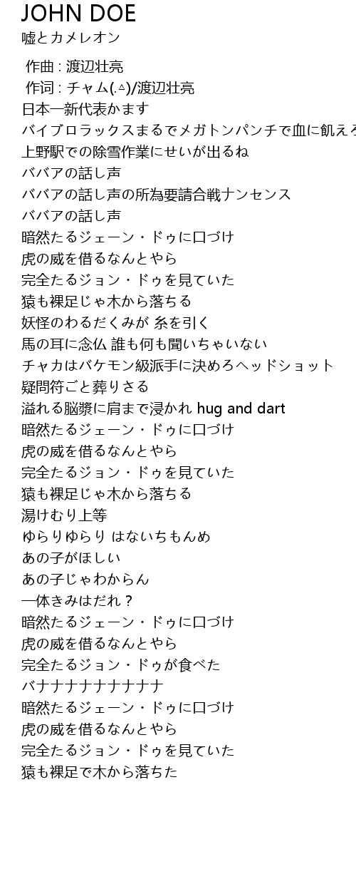 | [00:01.000] | 作词 : チャム(.△)/渡辺壮亮 |