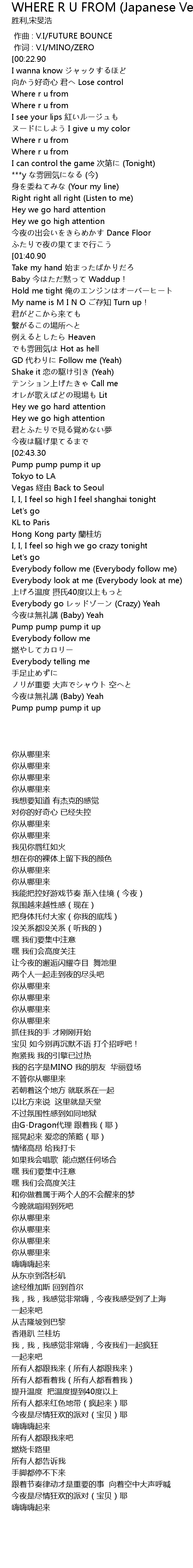 | [02:01.57] | My name is M I N O cun zhi Turn up! |
