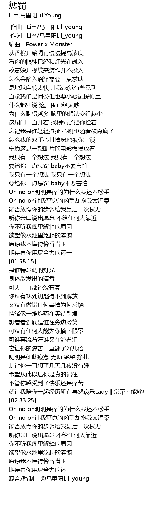 | [01:19.39] | 要给你一点惩罚 baby不要害怕 |