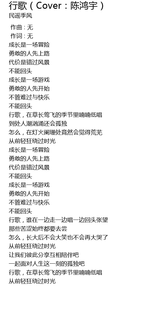 | [03:32.490] | xíng gē, zài cǎo zhǎng yīng fēi de jì jié lǐ nán nán dī chàng |