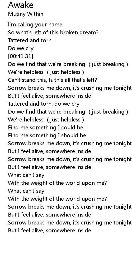 | [00:41.83] | Do we find that we're breaking (just breaking) |