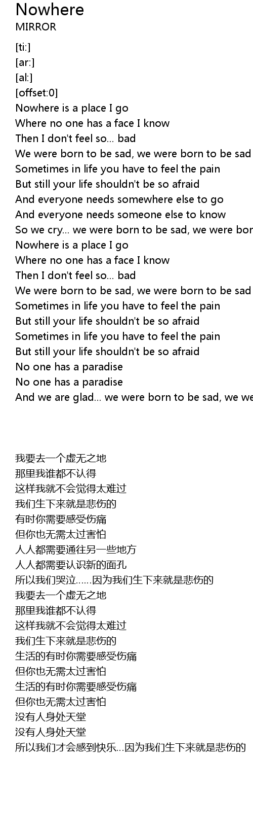 | [01:01.01] | So we cry... we were born to be sad, we were born to be sad |