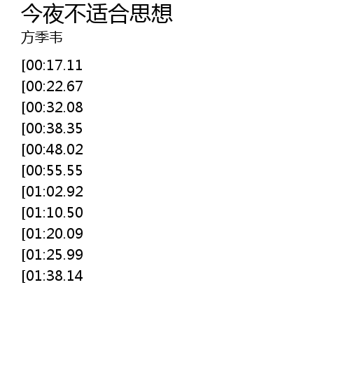 | [01:54.27][00:17.11] | 今夜不适合思想 也找不到梦的方向 |