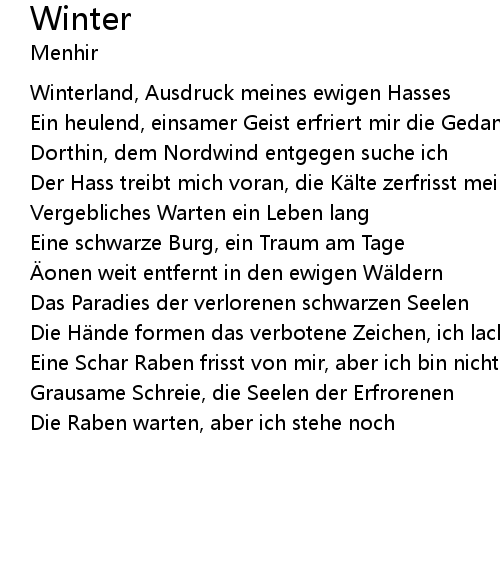 | Winterland, Ausdruck meines ewigen Hasses | |