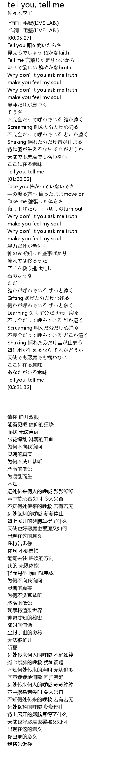 | [00:19.76] | Tell me 言葉じゃ足りないから |