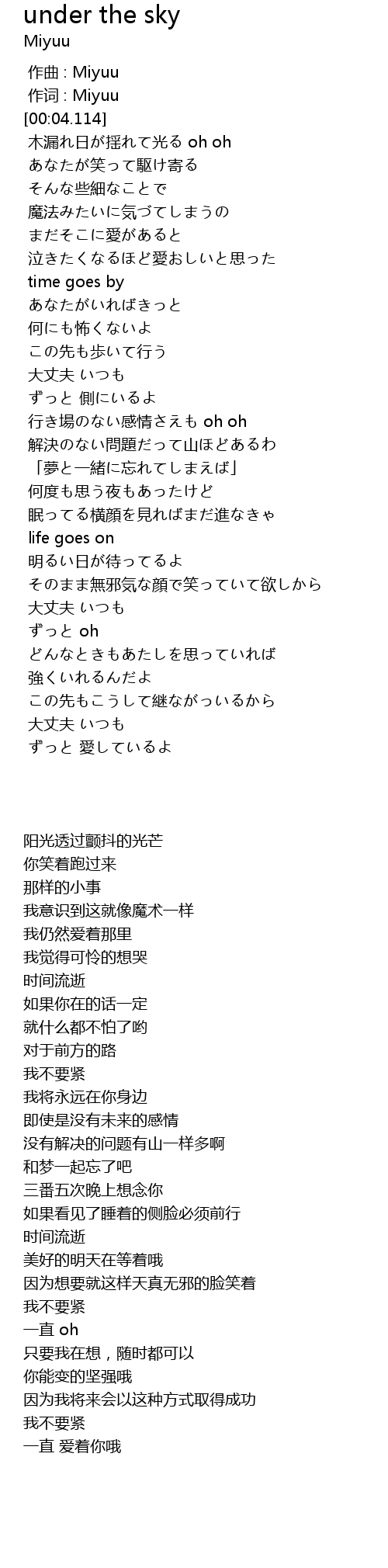 | [00:10.494] | mu lou ri yao guang oh oh |