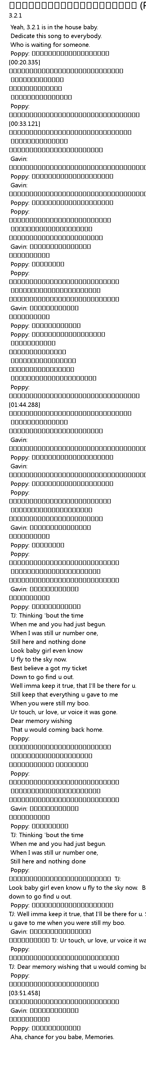 | [03:31.370] | Poppy: ไม่เคยจะมีใครผ่านมาทางนี้ TJ: Look baby girl even know u fly to the sky now. Best believe a got my ticket down to go find u out. |