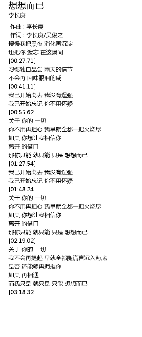 | [03:10.42] | 而我只是 就只是 只能 想想而已 |
