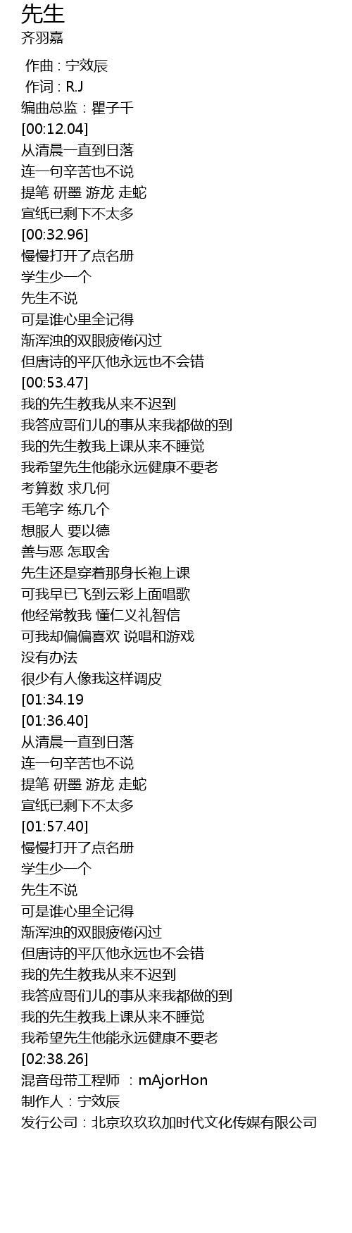 | [02:41.26] | 发行公司:北京玖玖玖加时代文化传媒有限公司 |