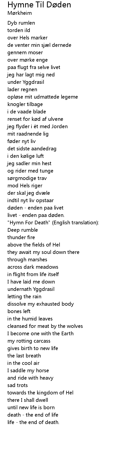| " Hymn For Death" English translation: | |