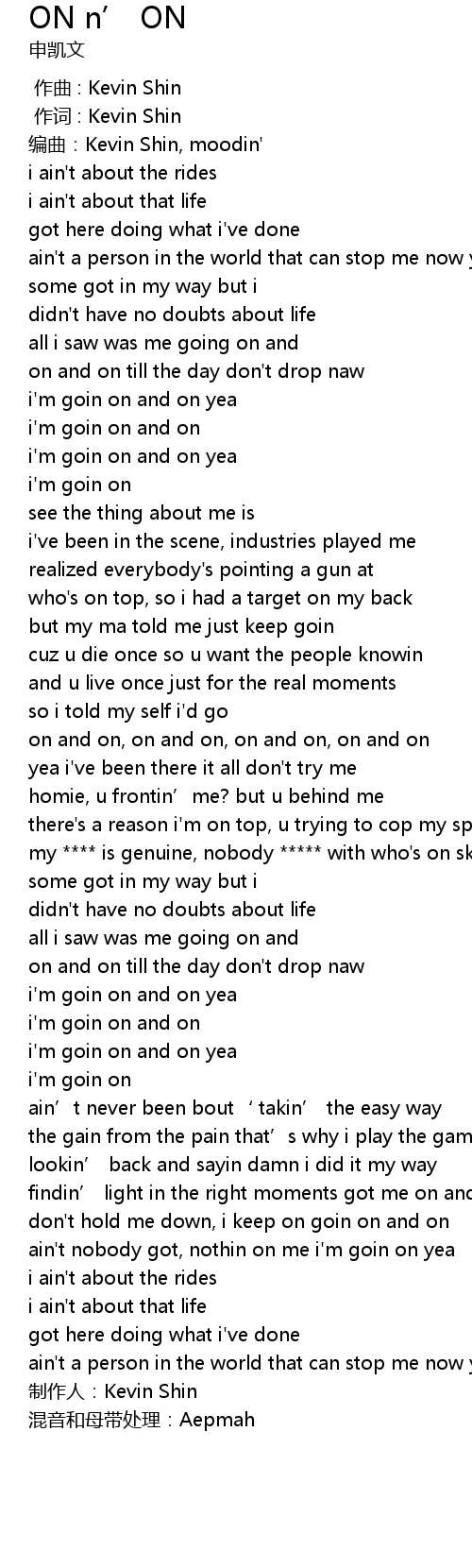 | [01:07.110] | on and on, on and on, on and on, on and on |
