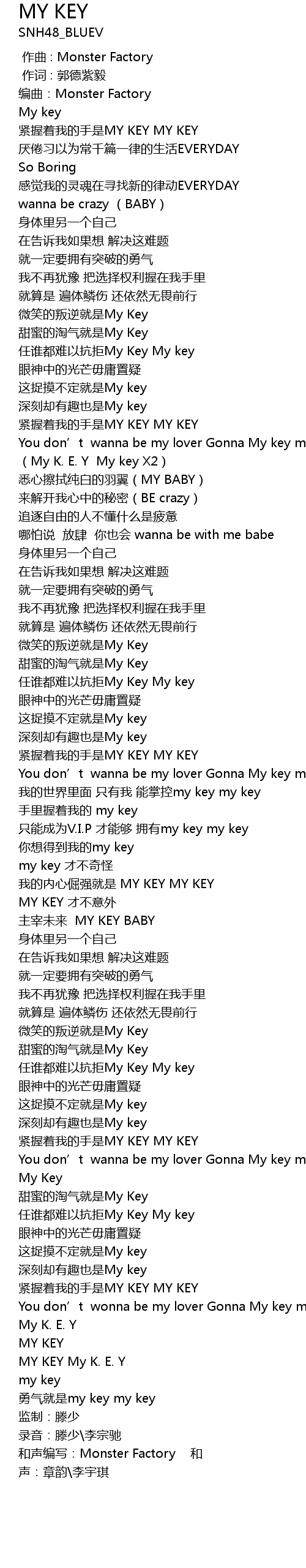 | [02:41.60] | wei xiao de pan ni jiu shi My Key |