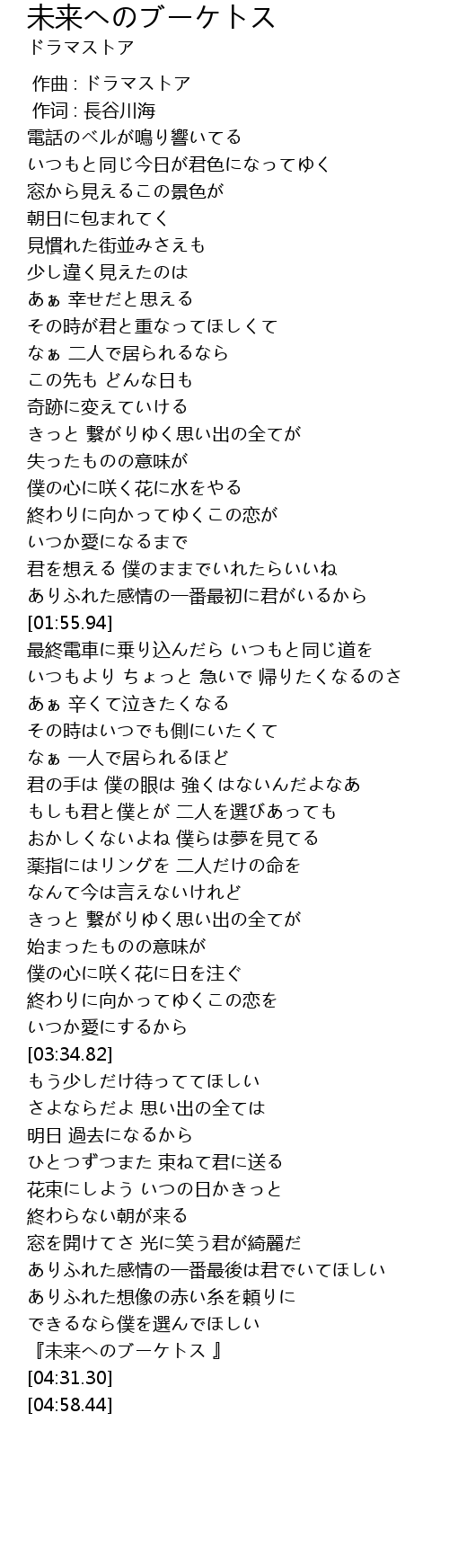 | [03:50.87] | 花束にしよう いつの日かきっと |