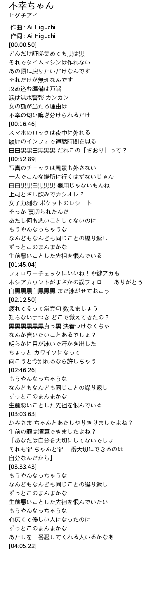 | [00:00.000] | zuo qu : Ai Higuchi |