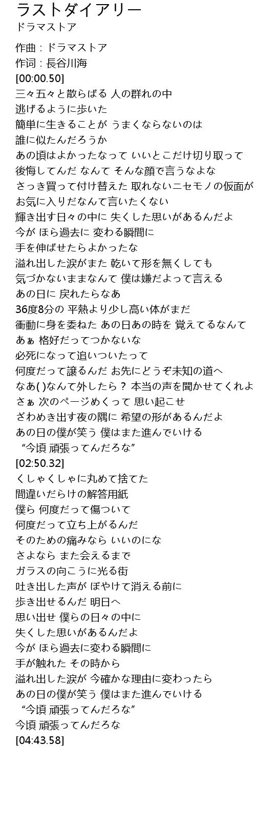 | [02:20.19] | なあ( )なんて外したら? 本当の声を聞かせてくれよ |